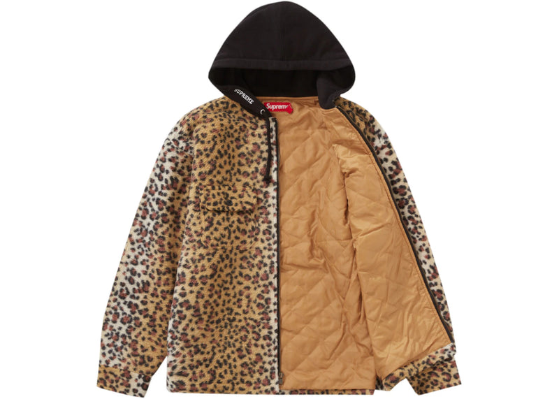 Supreme Fleece Zip Up Hooded Shirt Brown Leopard
