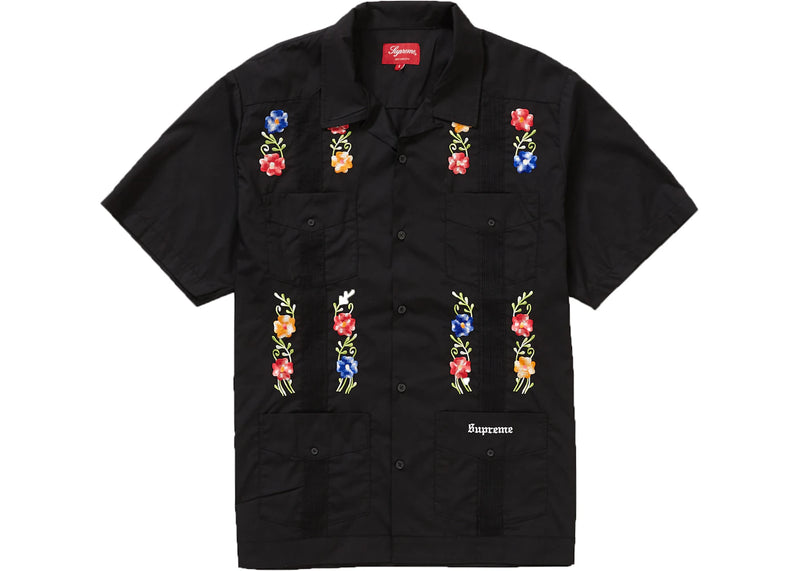 The Supreme Flowers Guayabera S/S Shirt Black is now available at Side Kicks!