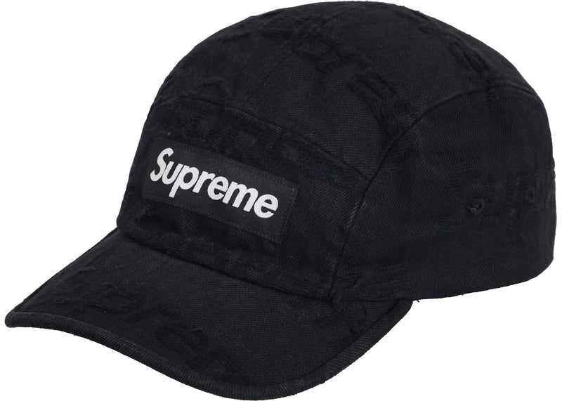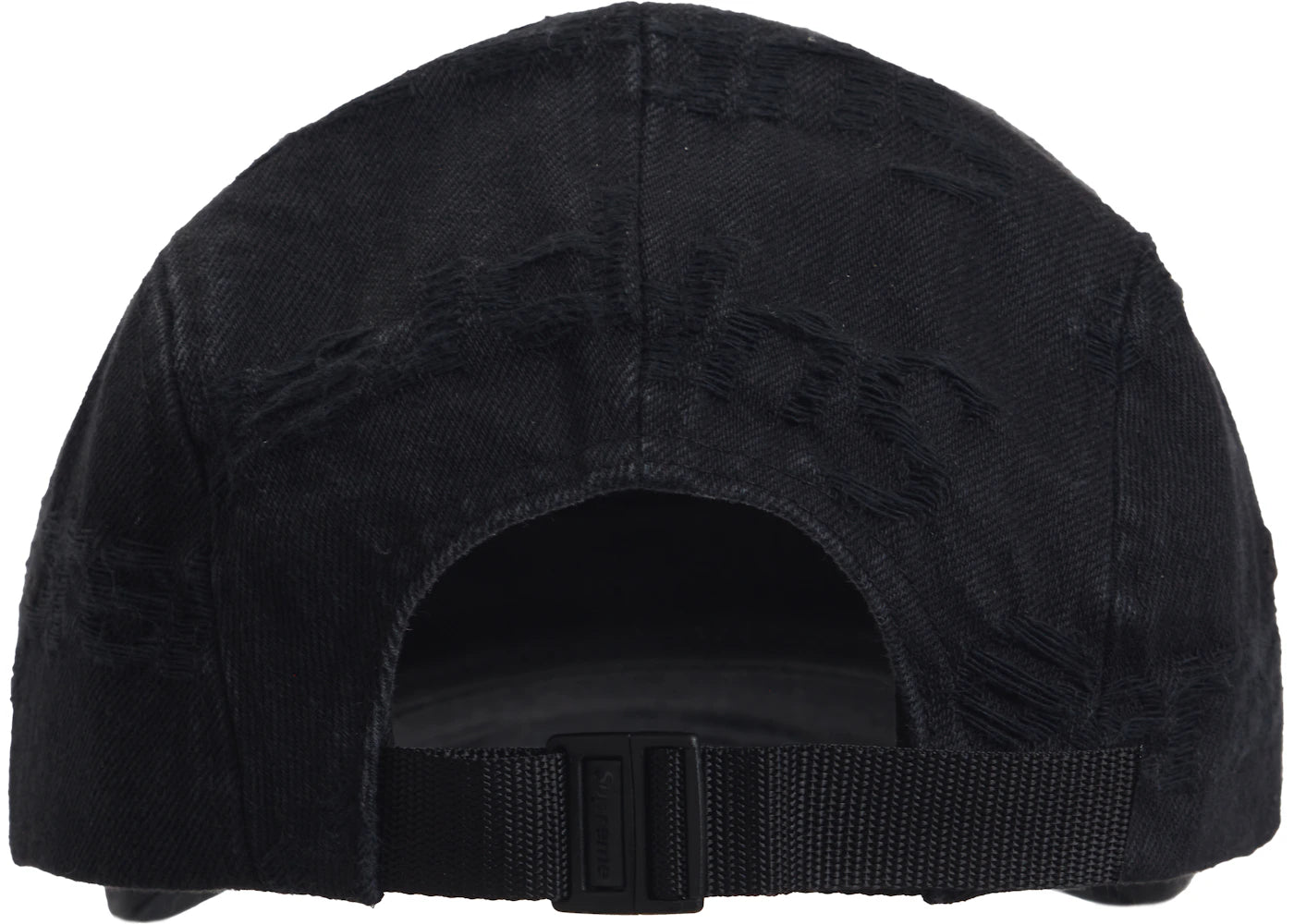 The Supreme Frayed Logos Denim Camp Cap Black is now available at Side Kicks!