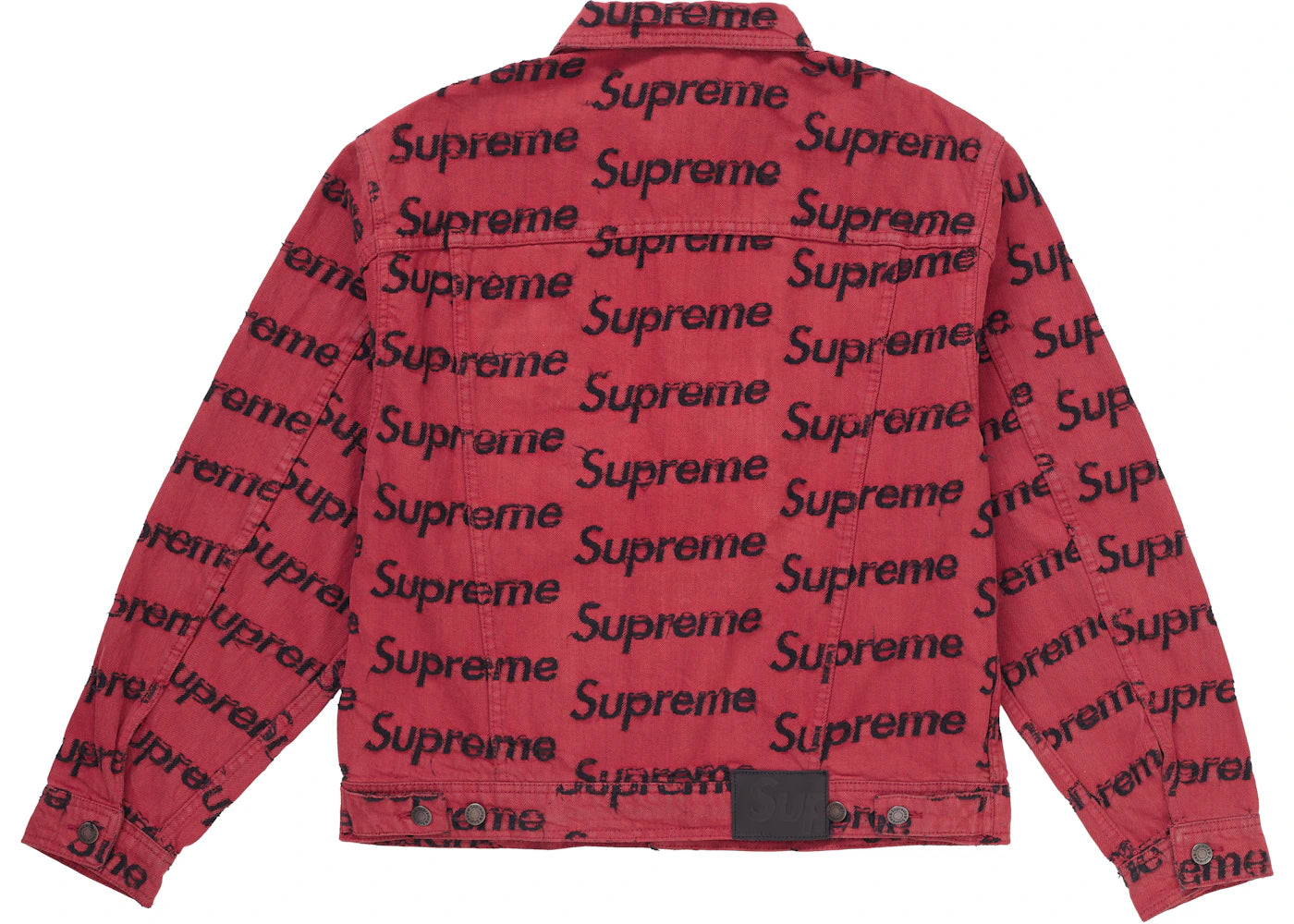 Supreme Frayed Logos Denim Trucker Jacket Red