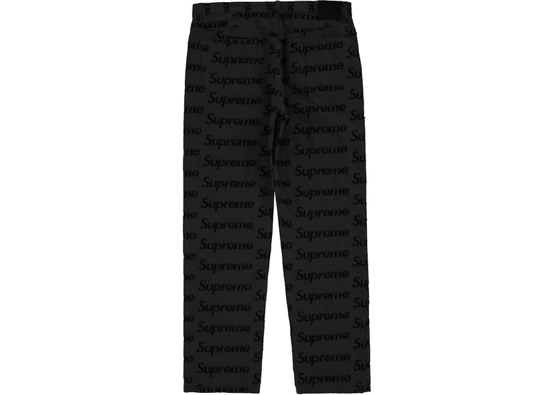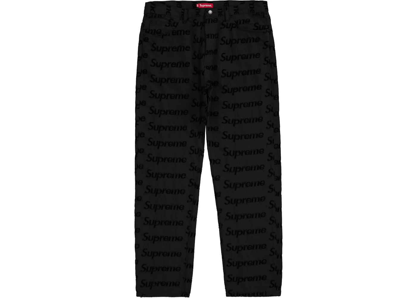 The Supreme Frayed Logos Regular Jean Black is now available at Side Kicks!