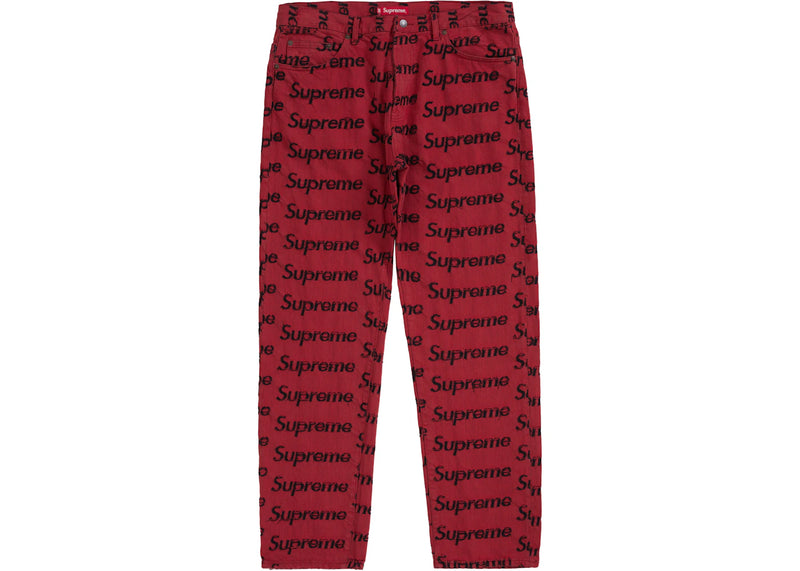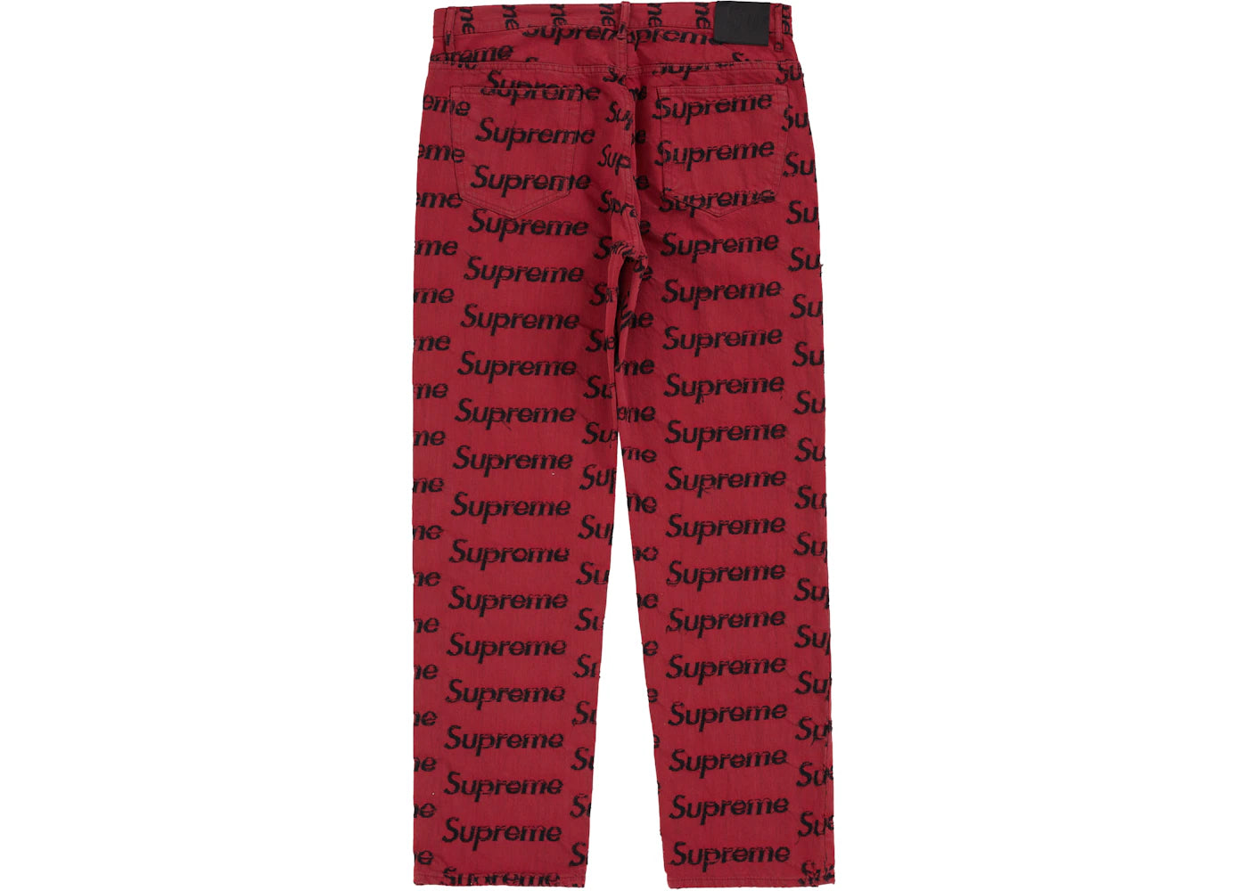 The Supreme Frayed Logos Regular Jean Red is now available at Side Kicks!