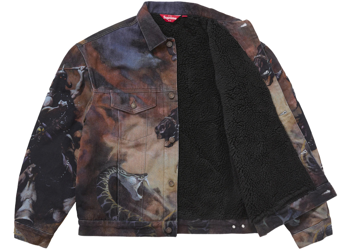 Supreme Frazetta Faux Shearling Lined Trucker Jacket Multicolor