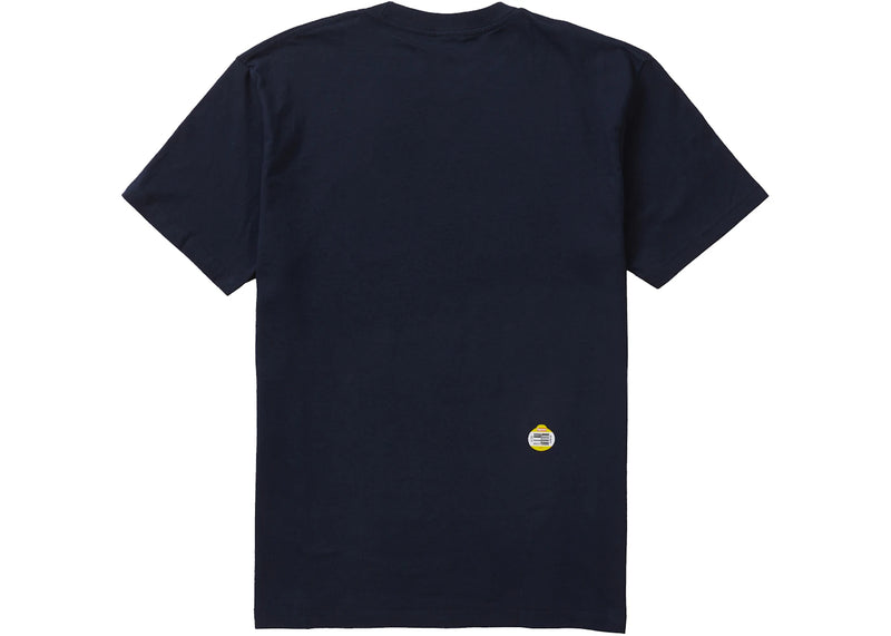 The Supreme Still Life Tee Navy features a monochrome design with an artistic photograph inspired by the Still Life painting genre. It has a rib knit crewneck with a white neck label displaying the Supreme logo in red. Made from 100% pre-shrunk cotton, the tee showcases a green-themed Still Life artwork of peaches on the chest, accompanied by the Supreme branding in white. Released on August 20, 2018, the Supreme Still Life Tee Navy is available now at Side Kicks.