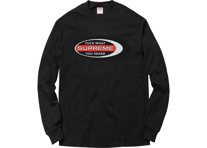 The Supreme Fuck What You Heard LS Tee Black is now available at Side Kicks!