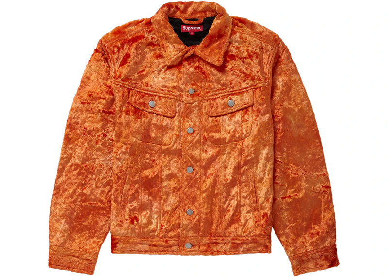 The Supreme Fuzzy Pile Trucker Jacket Orange is now available at Side Kicks!
