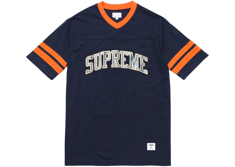 The Supreme Glitter Arc Football Top Navy is now available at Side Kicks!