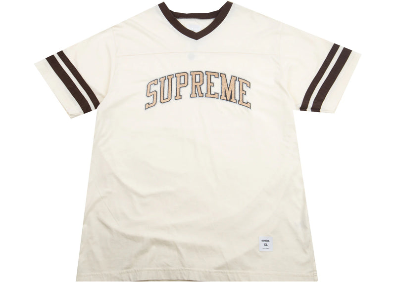 The Supreme Glitter Arc Football Top White is now available at Side Kicks!