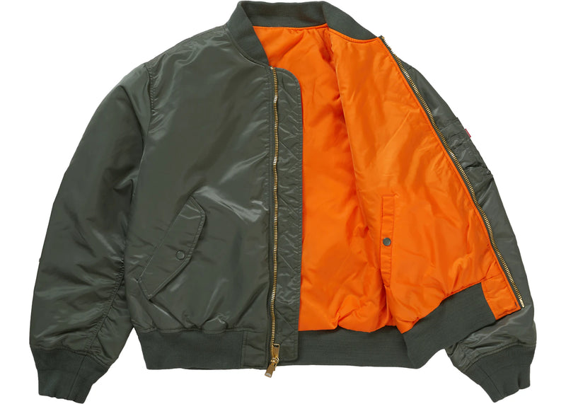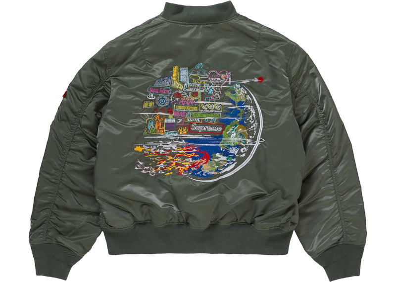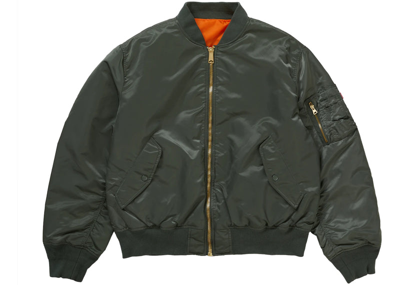 The Supreme Globe MA-1 Olive is now available at Side Kicks!