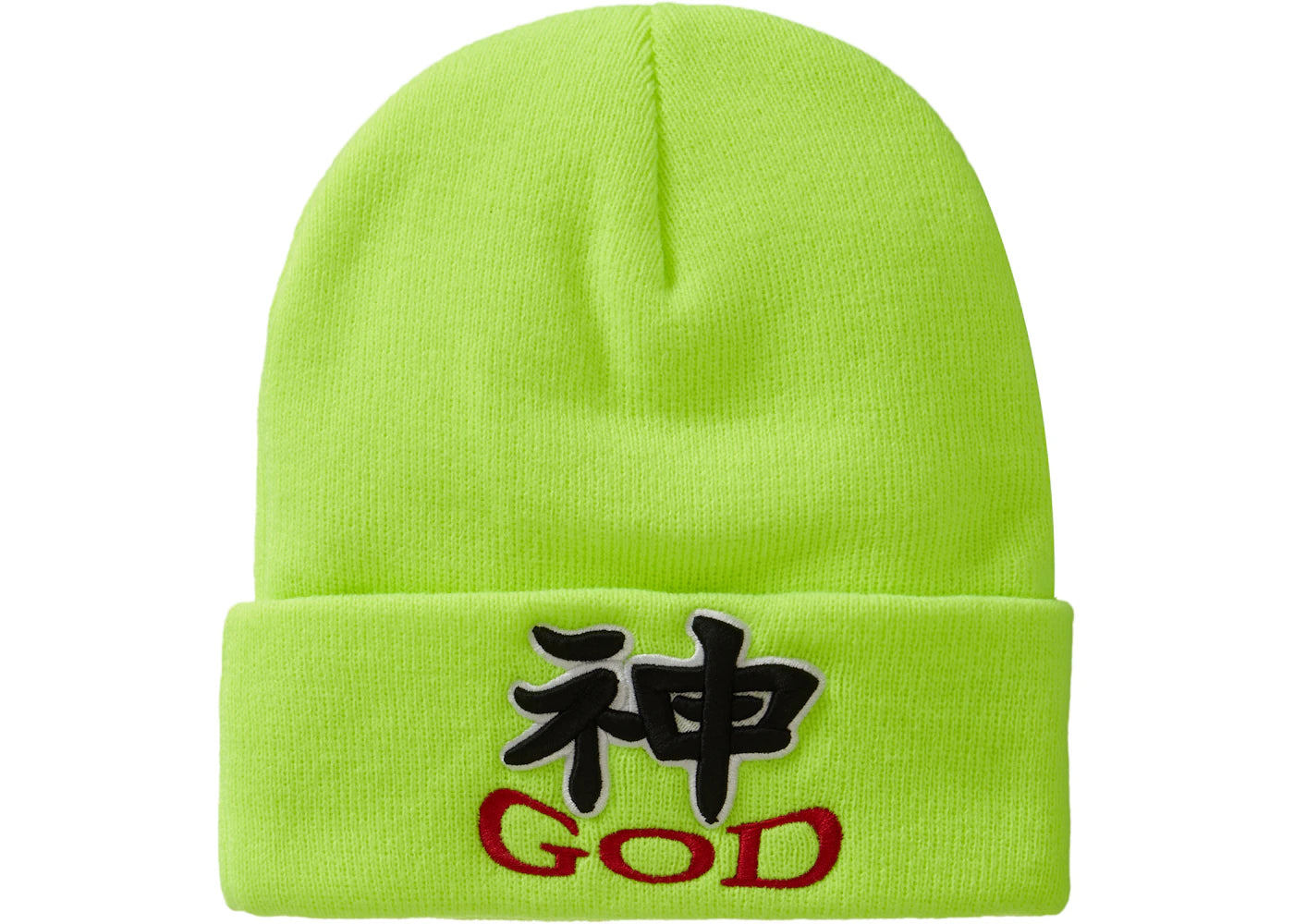 The Supreme God Beanie Fluorescent Yellow is now available at Side Kicks!