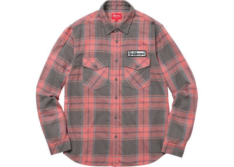 The Supreme God Bless Plaid Flannel Shirt Rose is now available at Side Kicks!