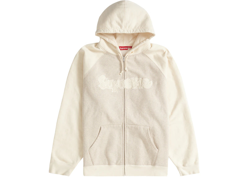 The Supreme Gonz Appliqué Zip Up Hooded Sweatshirt Natural is now available at Side Kicks!