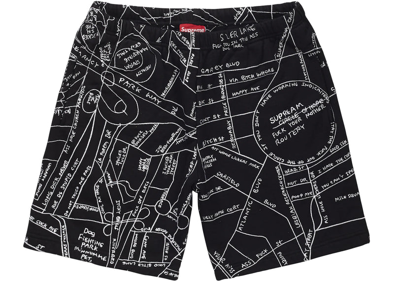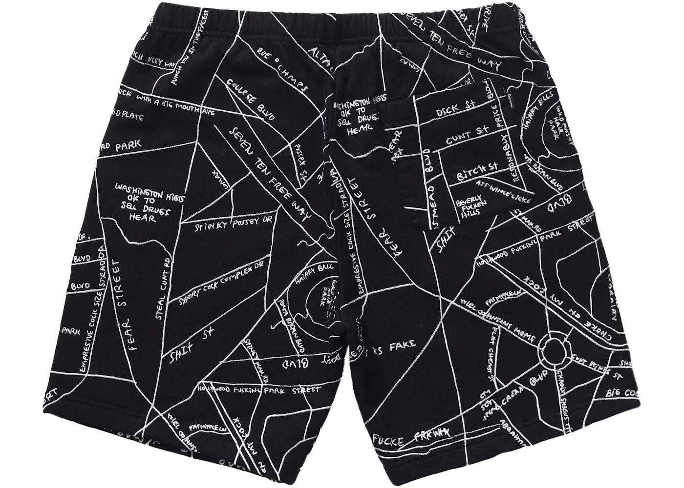 The Supreme Gonz Embroidered Map Sweatshort Black is now available at Side Kicks!