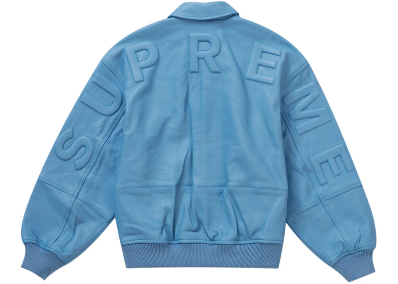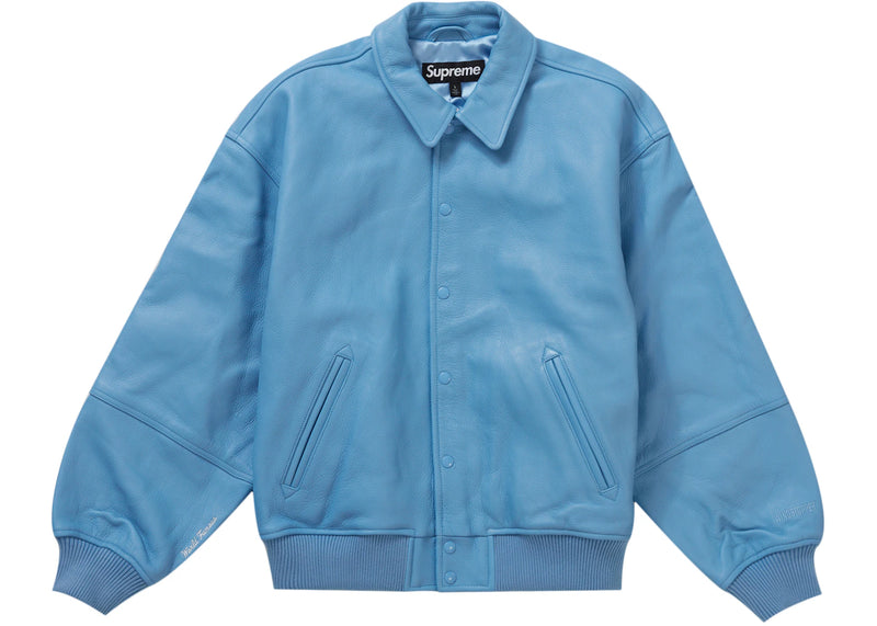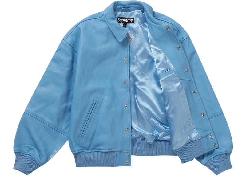 Supreme GORE-TEX Infinium WINDSTOPPER Leather Varsity Jacket Light Blue