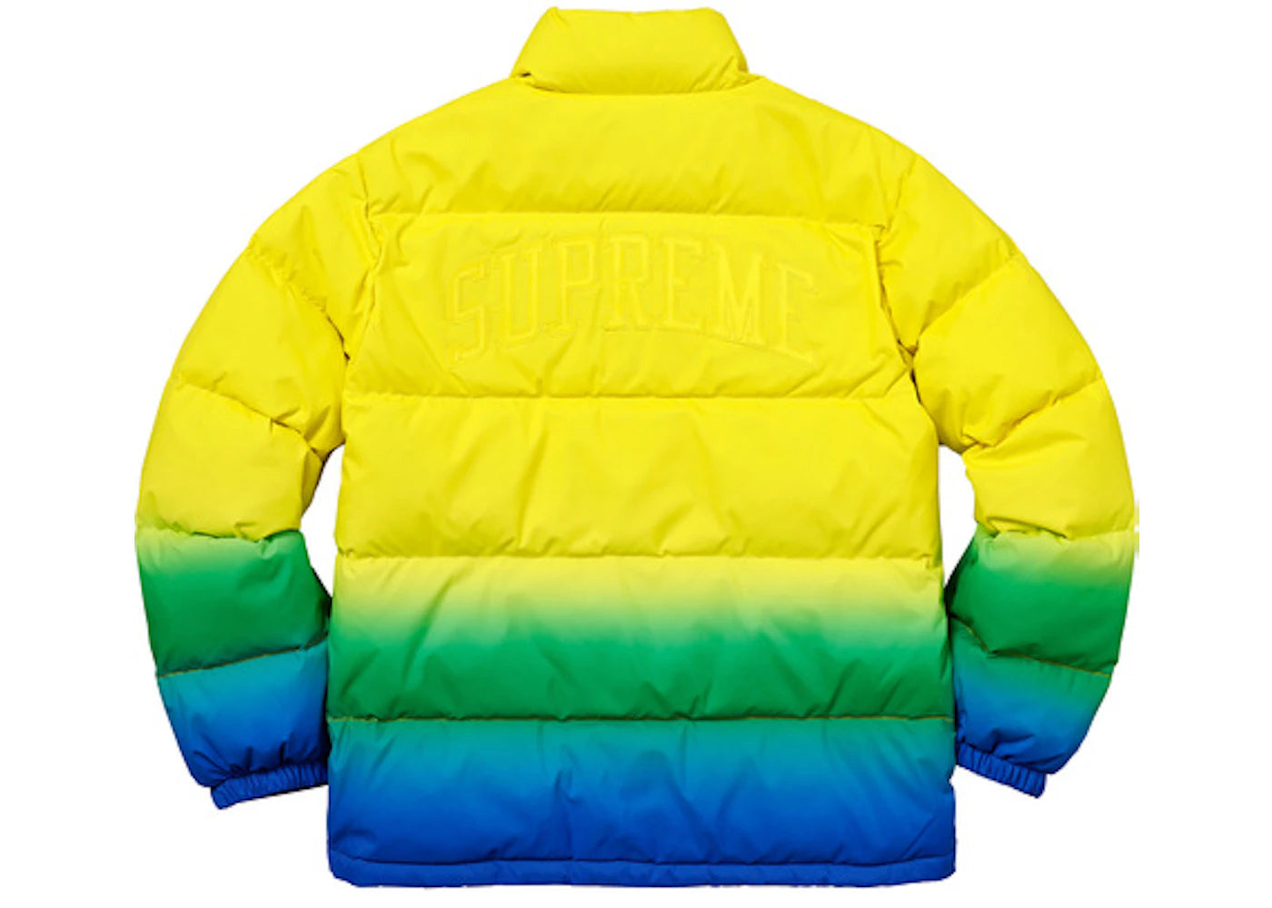 The Supreme Gradient Puffy Jacket Yellow is now available at Side Kicks!