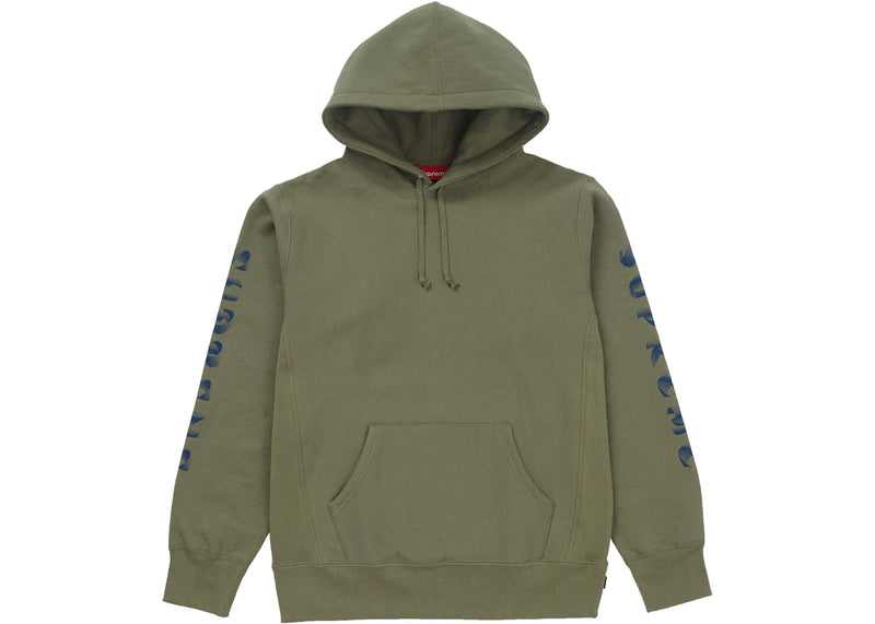 The Supreme Gradient Sleeve Hooded Sweatshirt Light Olive is now available at Side Kicks!