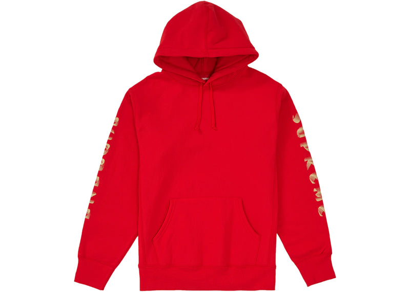 The Supreme Gradient Sleeve Hooded Sweatshirt Red is now available at Side Kicks!