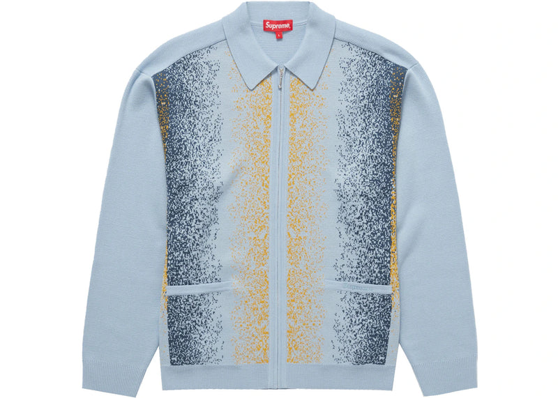 The Supreme Gradient Stripe Zip Up Cardigan Light Slate is now available at Side Kicks!