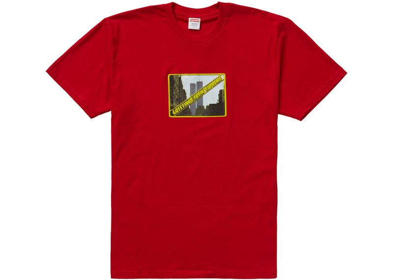 The Supreme Greetings Tee Red is now available at Side Kicks!