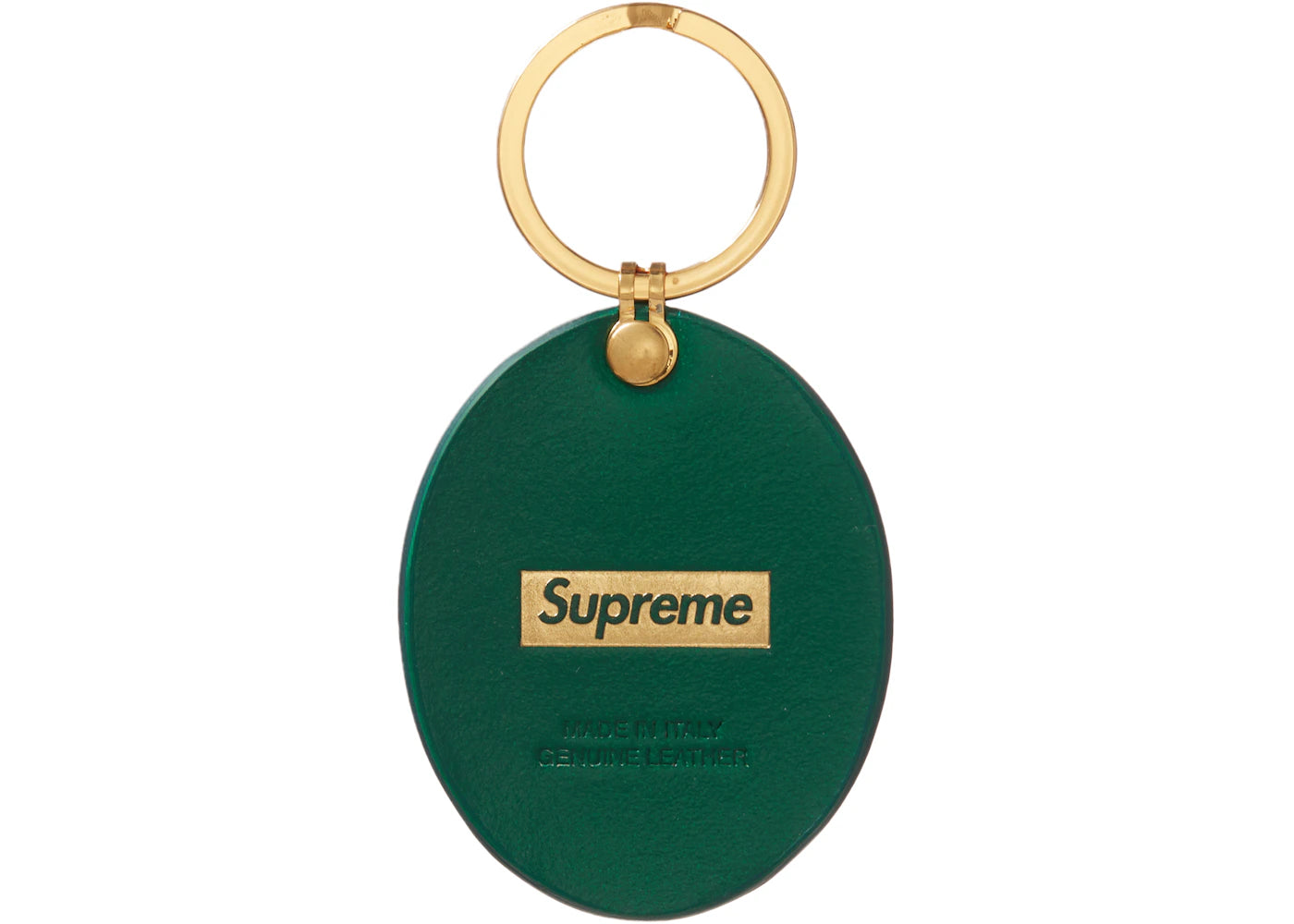The Supreme Guadalupe Leather Keychain Green is now available at Side Kicks!