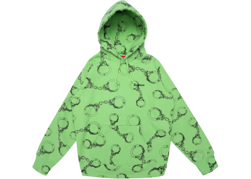 The Supreme Handcuffs Hooded Sweatshirt Bright Green is now available at Side Kicks!