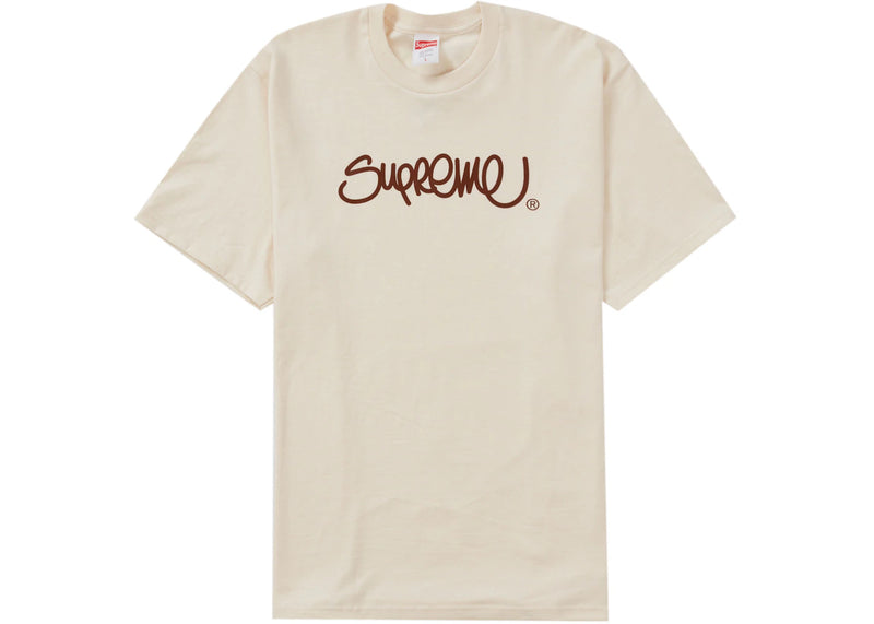 The Supreme Handstyle Tee Natural is now available at Side Kicks!