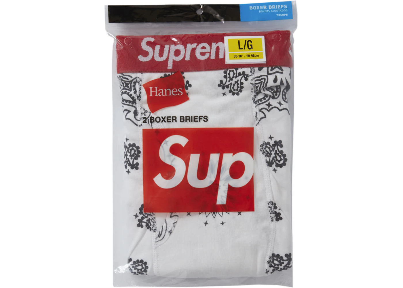 The Supreme Hanes Bandana Boxer Briefs (2 Pack) White is now available at Side Kicks!