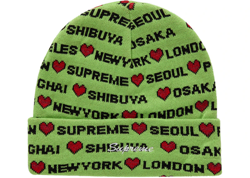 The Supreme Hearts Beanie Green is now available at Side Kicks!