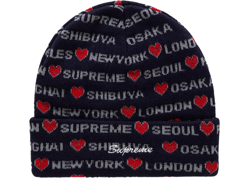 The Supreme Hearts Beanie Navy is now available at Side Kicks!