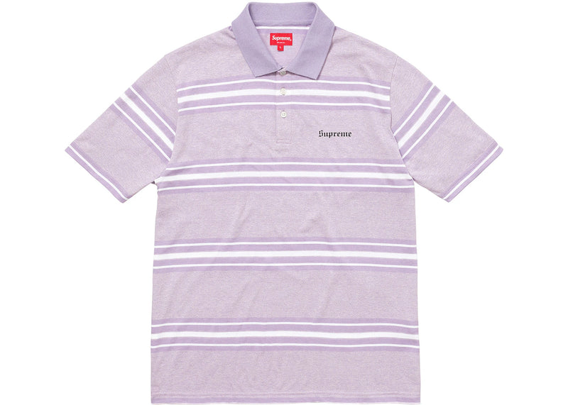 The Supreme Heather Stripe Polo Light Purple is now available at Side Kicks!