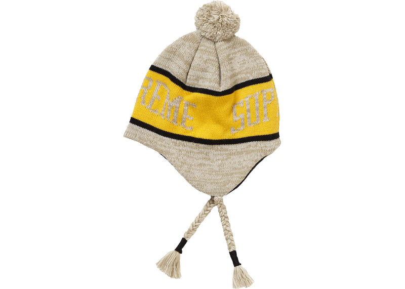 The Supreme Heathered Earflip Beanie Oatmeal is now available at Side Kicks!