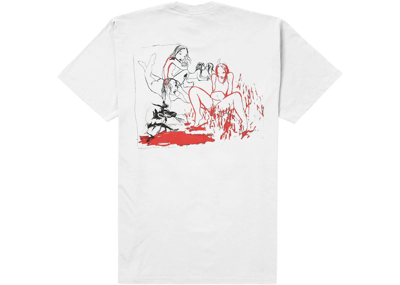 The Supreme Heroines Tee features artwork by Hungarian artist Rita Ackermann, matching the design from the Rita Ackermann Rayon Shirt. It was released in six color options as part of Supreme's FW19 Week 7 drop. Released on October 10, 2019, the Supreme Heroines Tee is available now at Side Kicks.