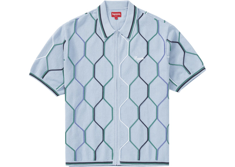 The Supreme Hex Zip Up Polo Blue is now available at Side Kicks!