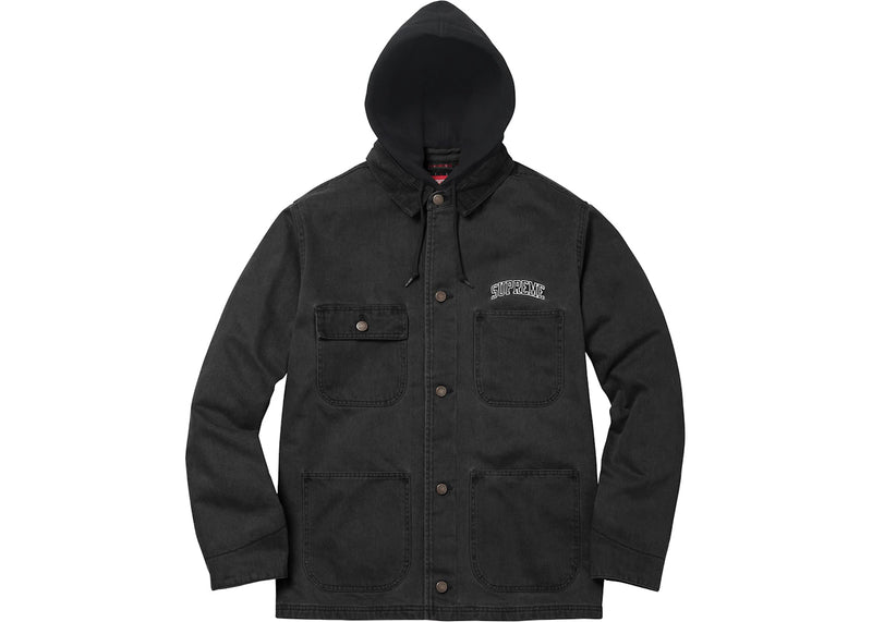 The Supreme Hooded Chore Coat Black is now available at Side Kicks!