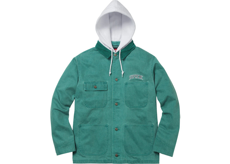The Supreme Hooded Chore Coat Teal is now available at Side Kicks!