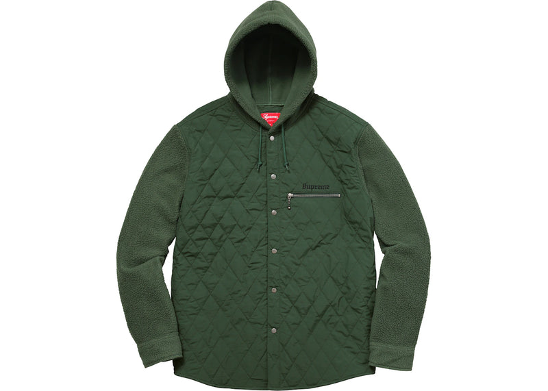 The Supreme Hooded Fleece Nylon Shirt Green is now available at Side Kicks!