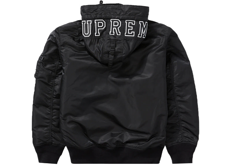 The Supreme Hooded MA-1 Black is now available at Side Kicks!