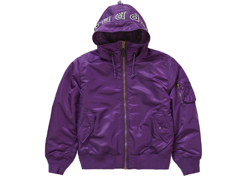 The Supreme Hooded MA-1 Purple is now available at Side Kicks!