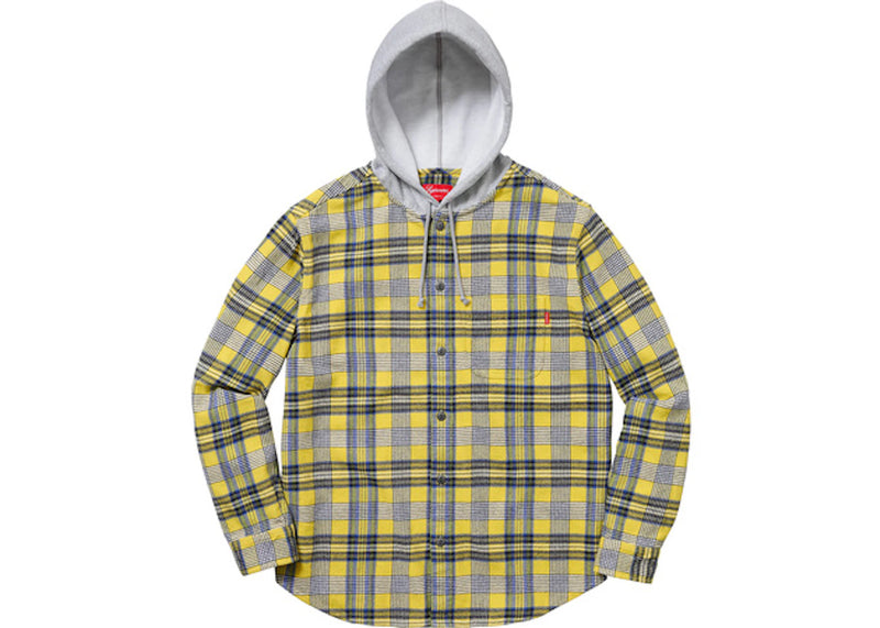 The Supreme Hooded Plaid Flannel Shirt Yellow is now available at Side Kicks!
