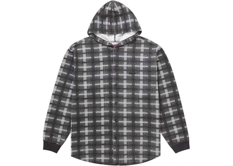 The Supreme Hooded Plaid Knit Shirt Black is now available at Side Kicks!