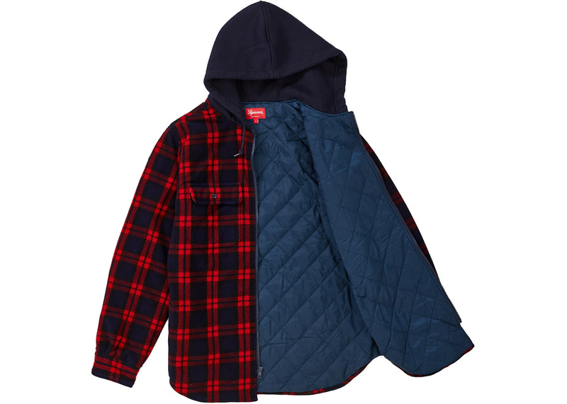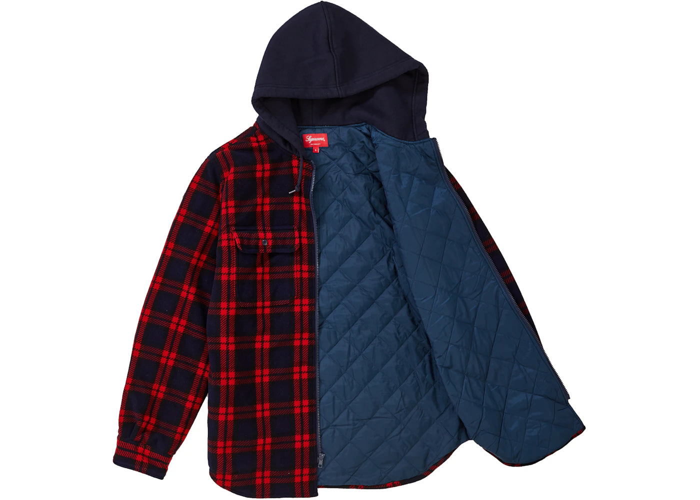 The Supreme Hooded Plaid Work Shirt Navy is now available at Side Kicks!