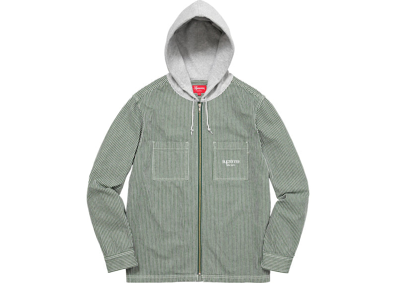 The Supreme Hooded Stripe Denim Zip Up Shirt Green is now available at Side Kicks!