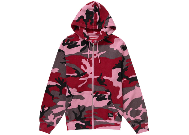 The Supreme Hooded Zip Up Thermal Pink Camo is now available at Side Kicks!