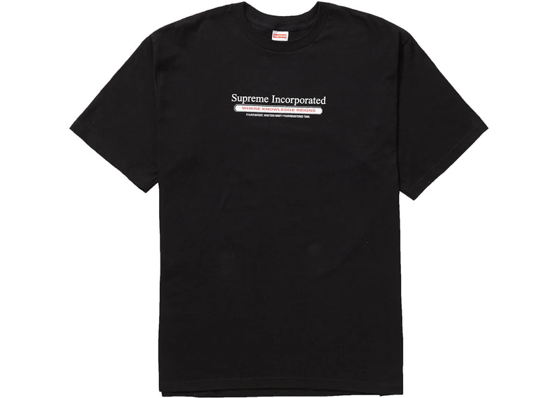 The Supreme Inc. Tee features a corporate-inspired design with "Supreme Incorporated" printed across the chest. The graphic includes a pixelated box with the phrase "Where Knowledge Reigns." Available in eight...