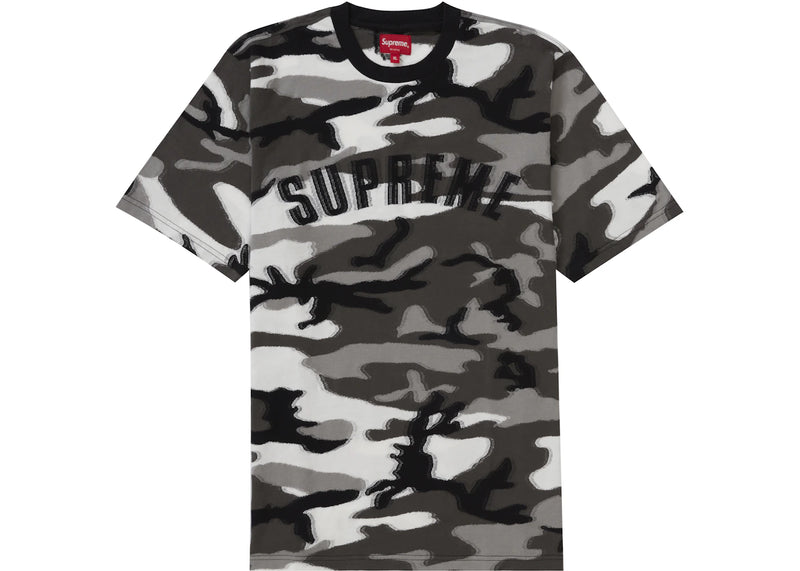 The Supreme Intarsia Camo S/S Top Snow Camo is now available at Side Kicks!