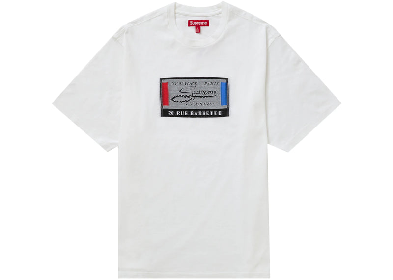 The Supreme Intarsia Label S/S Top White is now available at Side Kicks!