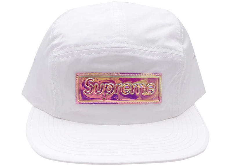 The Supreme Iridescent Logo Camp Cap White is now available at Side Kicks!
