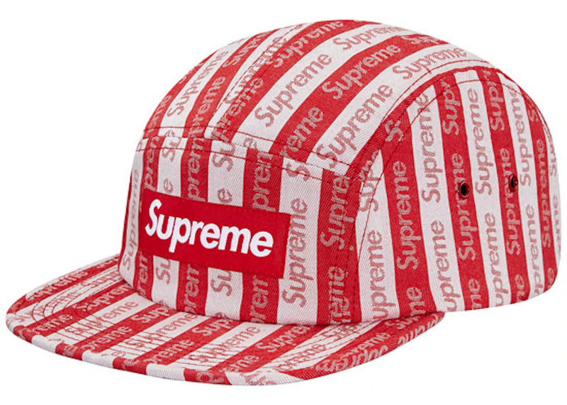 The Supreme Jacquard All Over Camp Cap Red is now available at Side Kicks!