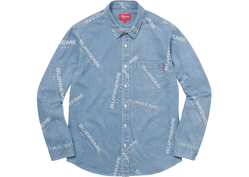 The Supreme Jacquard Denim Shirt Blue is now available at Side Kicks!