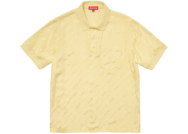 The Supreme Jacquard Logo Silk Polo Pale Yellow is now available at Side Kicks!